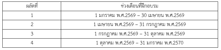 ระยะเวลาการฝึกอบรม: 16 สัปดาห์ ต่อผลัด
