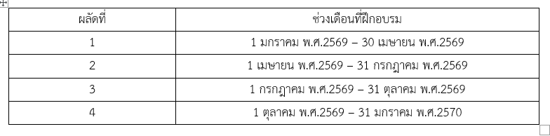 ระยะเวลาการฝึกอบรม: 16 สัปดาห์ ต่อผลัด