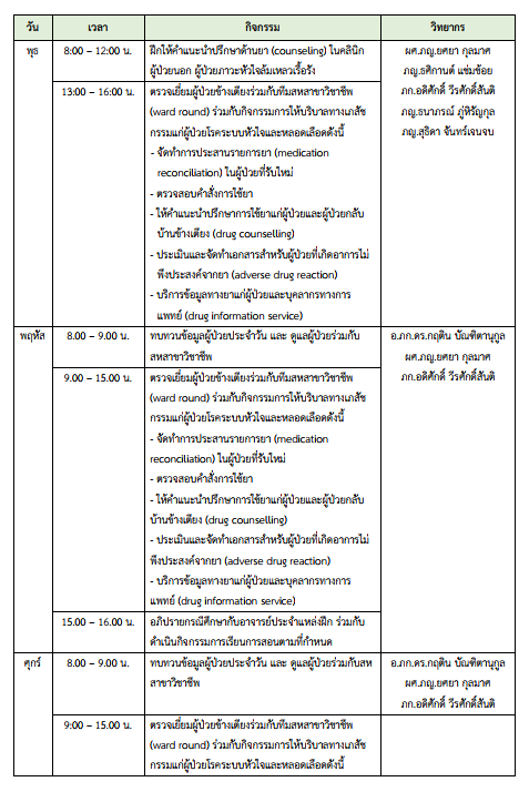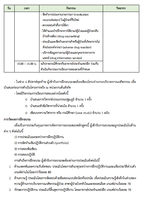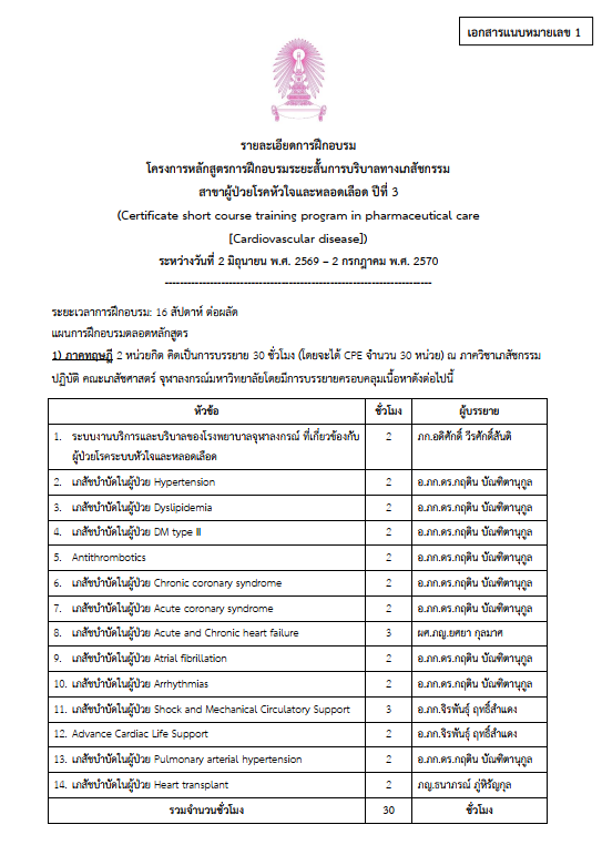 โครงการหลักสูตรการฝึกอบรมระยะสั้นการบริบาลทางเภสัชกรรม สาขาผู้ป่วยโรคหัวใจและหลอดเลือด ปีที่ 3