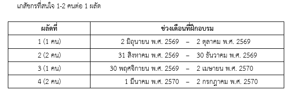 ระยะเวลาการฝึกอบรม: 16 สัปดาห์ ต่อผลัด