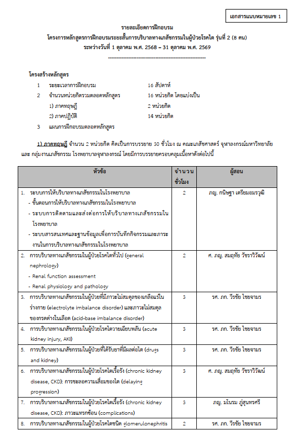โครงการหลักสูตรการฝึกอบรมระยะสั้นการบริบาลทางเภสัชกรรม ในผู้ป่วยโรคไต รุ่นที่ 2
