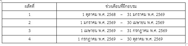 ระยะเวลาการฝึกอบรม: 16 สัปดาห์ ต่อผลัด