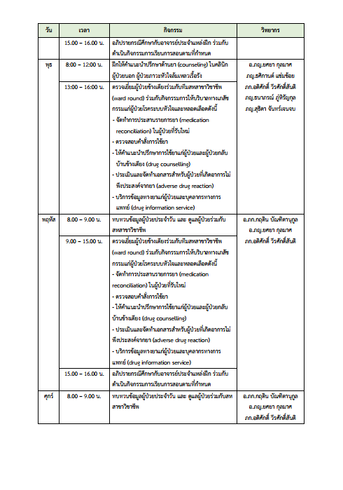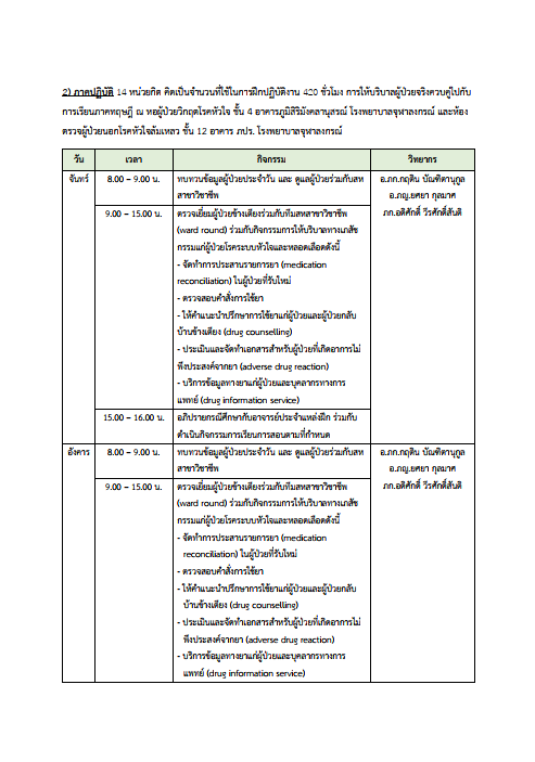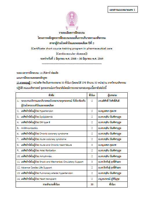 โครงการหลักสูตรการฝึกอบรมระยะสั้นการบริบาลทางเภสัชกรรม สาขาผู้ป่วยโรคหัวใจและหลอดเลือด ปีที่ 2