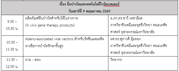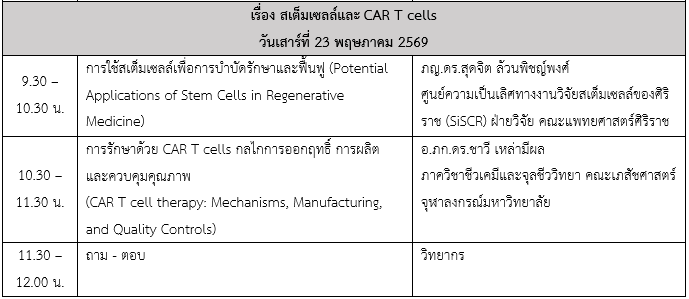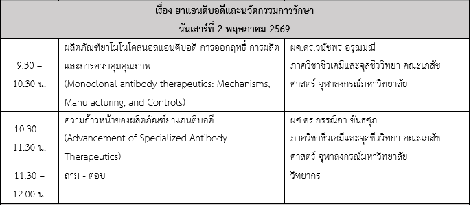 โครงการอบรมเชิงปฏิบัติการ การพัฒนาทักษะด้านการวิจัยและพัฒนา การผลิต และการควบคุมคุณภาพ ยาชีววัตถุและผลิตภัณฑ์ยาเพื่อการบำบัดรักษาขั้นสูง