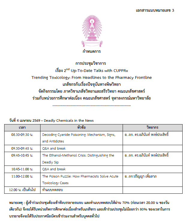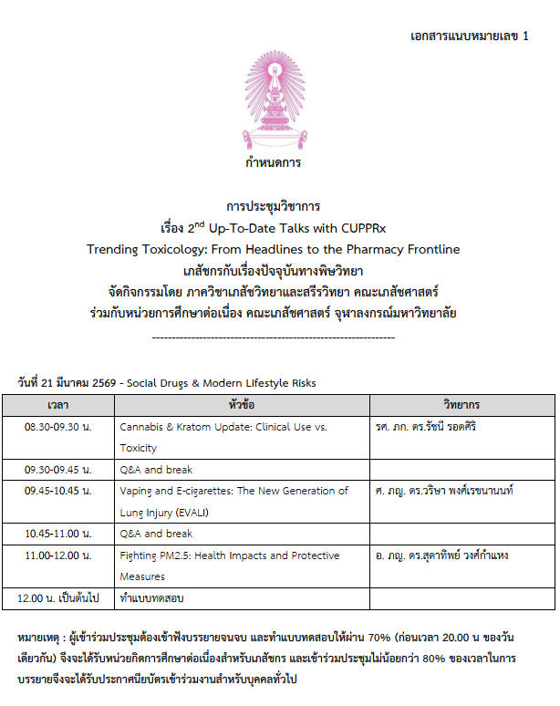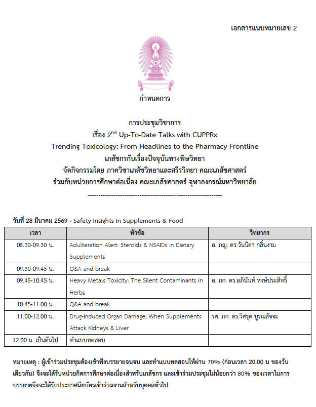 2nd Up-To-Date Talks with CUPPRx Trending Toxicology: From Headlines to the Pharmacy Frontline เภสัชกรกับเรื่องปัจจุบันทางพิษวิทยา